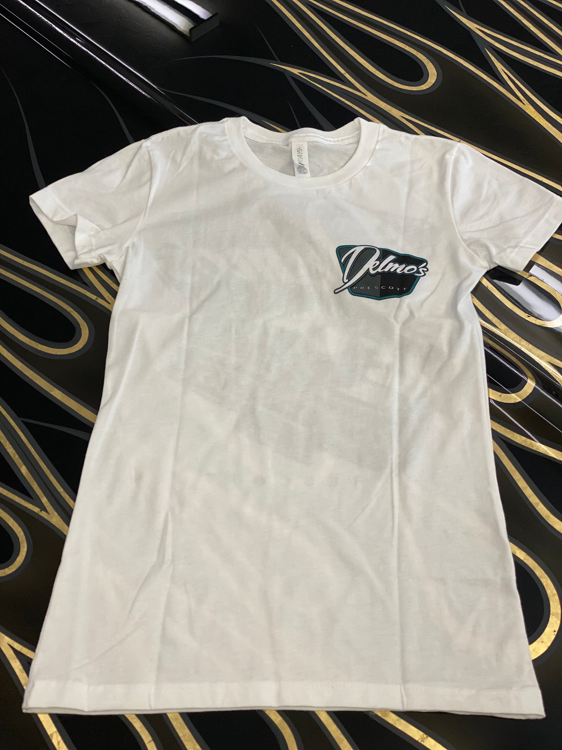 Delmo's Womens White Prescott T-Shirt, Crew Neck