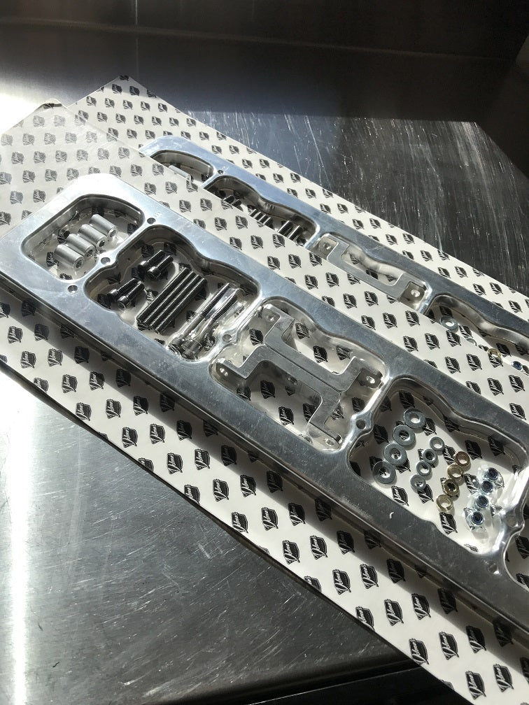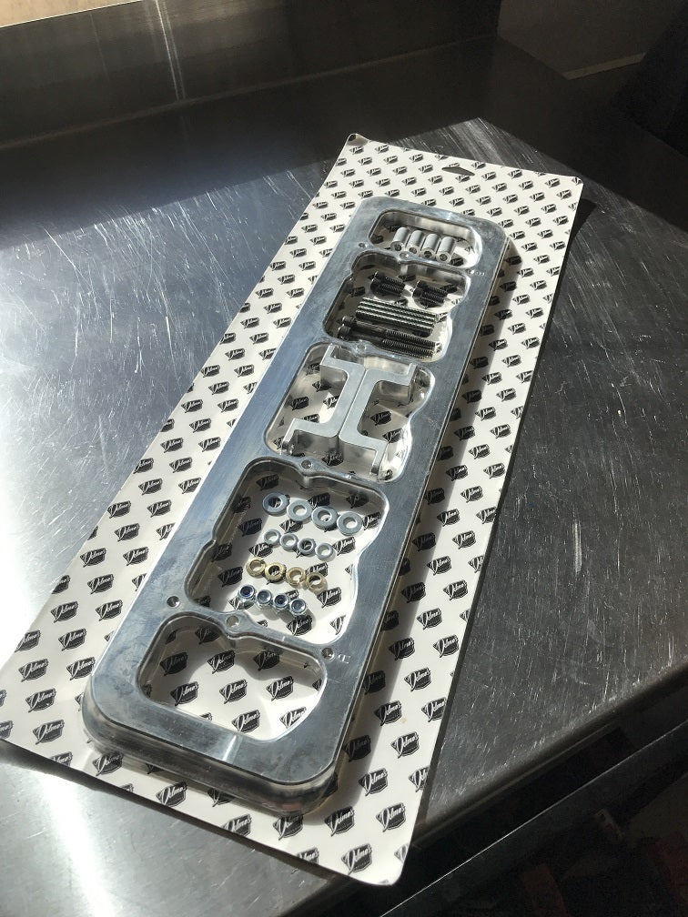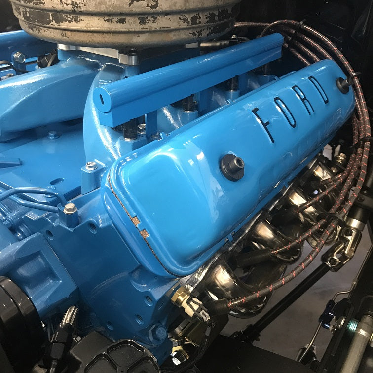 Fits any standard LS head and adapts the early Ford Y block valve covers. Gaskets not included.