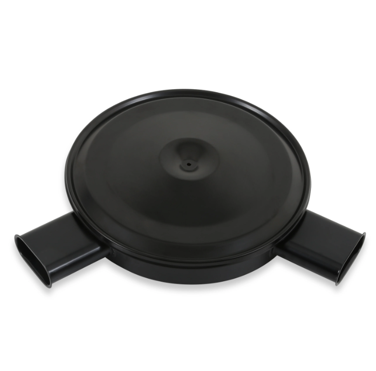 RetroFilter Drive-By-Wire Dual Snorkel Air Cleaner base with lid and cotton gauze air filter. 14-Inch Diameter - Black. Adapts to LS style drive-by-wire throttle bodies.